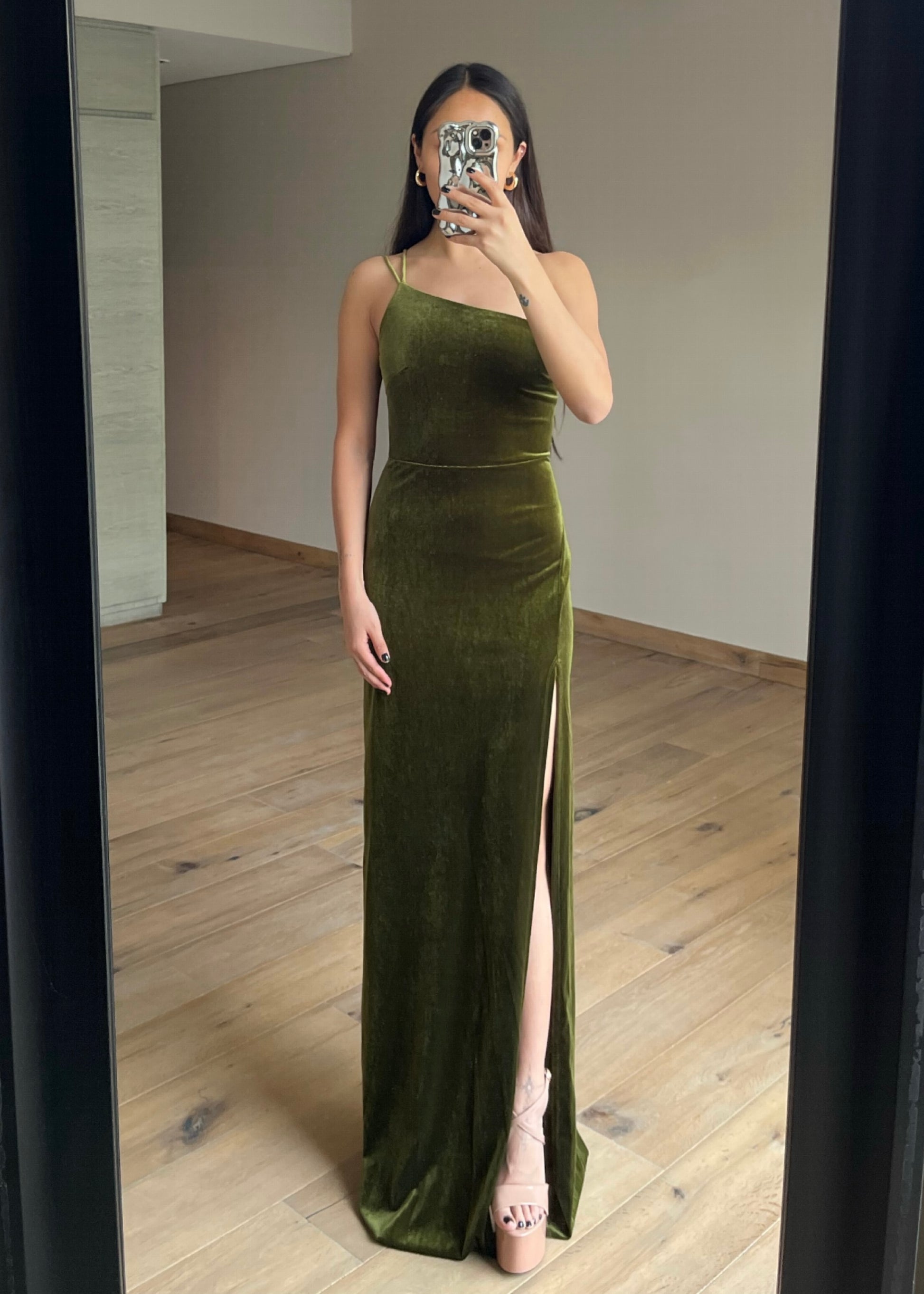 Olive Green Velvet Maxi Dress
